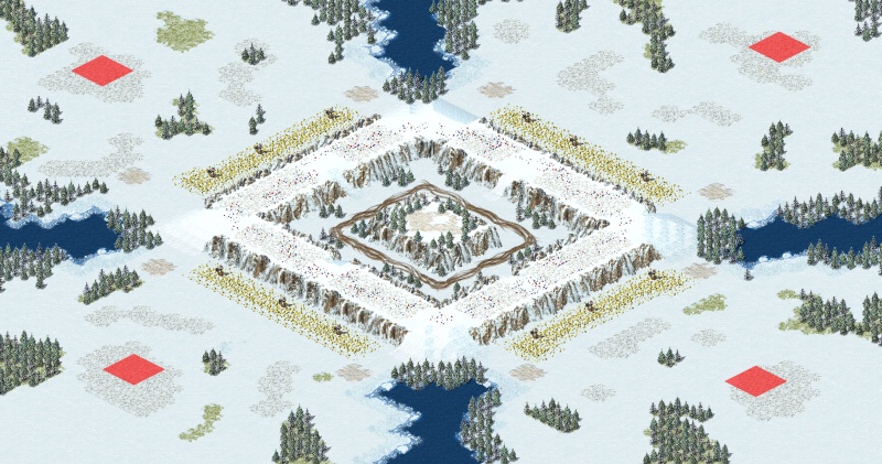 Features: The map features 4 bases, a large round ridge, 4 derricks and the statue of Liberty (the 'angel') in the centre.