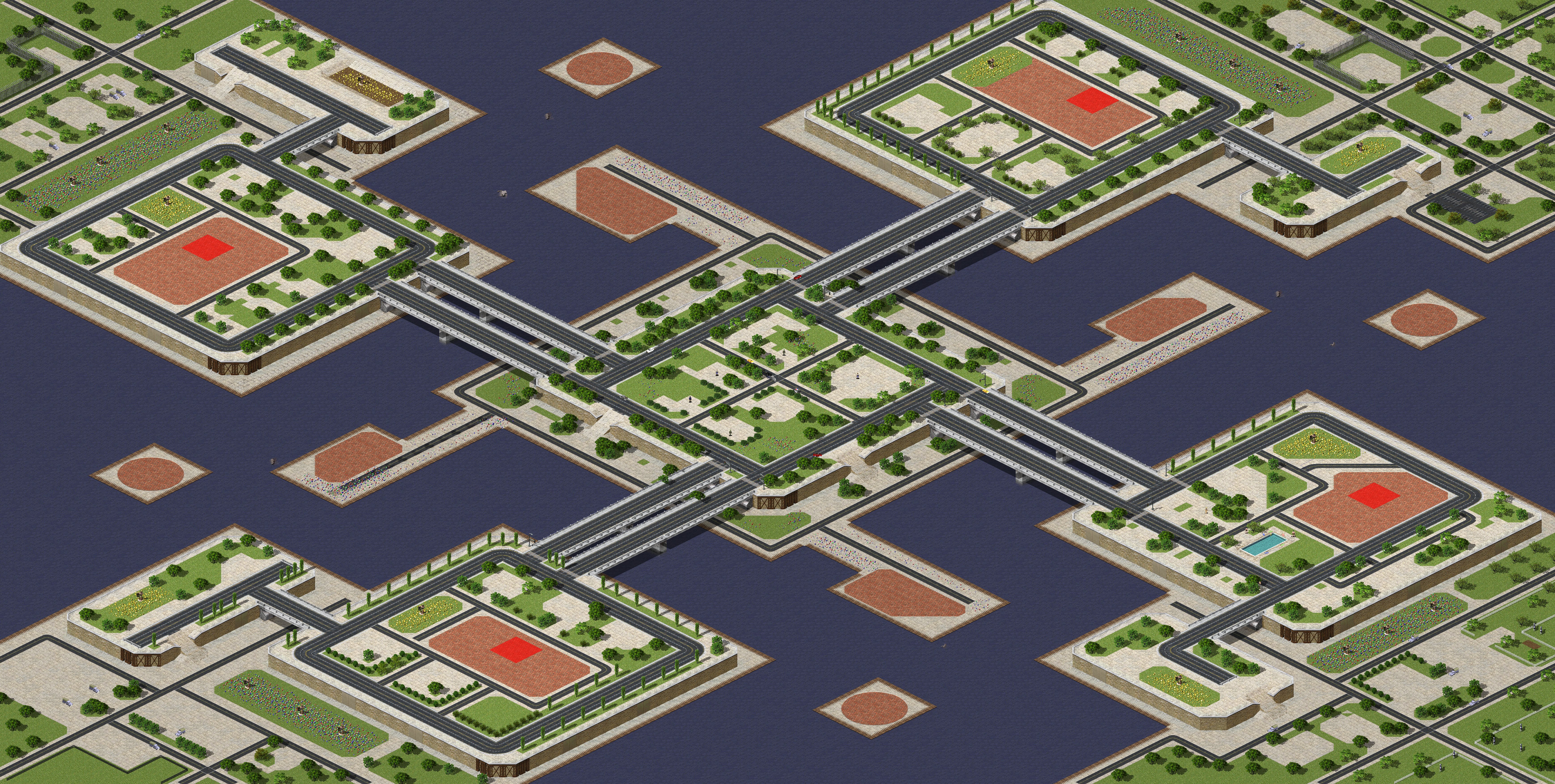Features: Plenty of room for naval battles and small cities to hide in and control. Starting positions are defendable, but you will eventually be forced to expand your base. Superweapons could make the difference on this map.