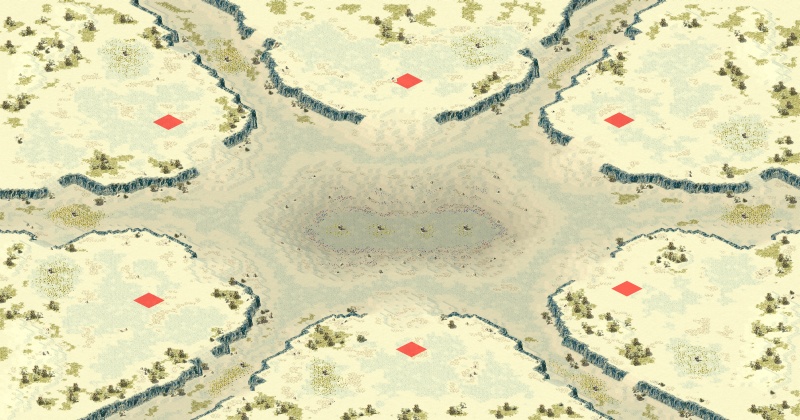This is a straight six player snow map, no water, meaning no evil Boomers. The gold is spread evenly all throughout the map, of course that does not mean it's not a precious commodity.