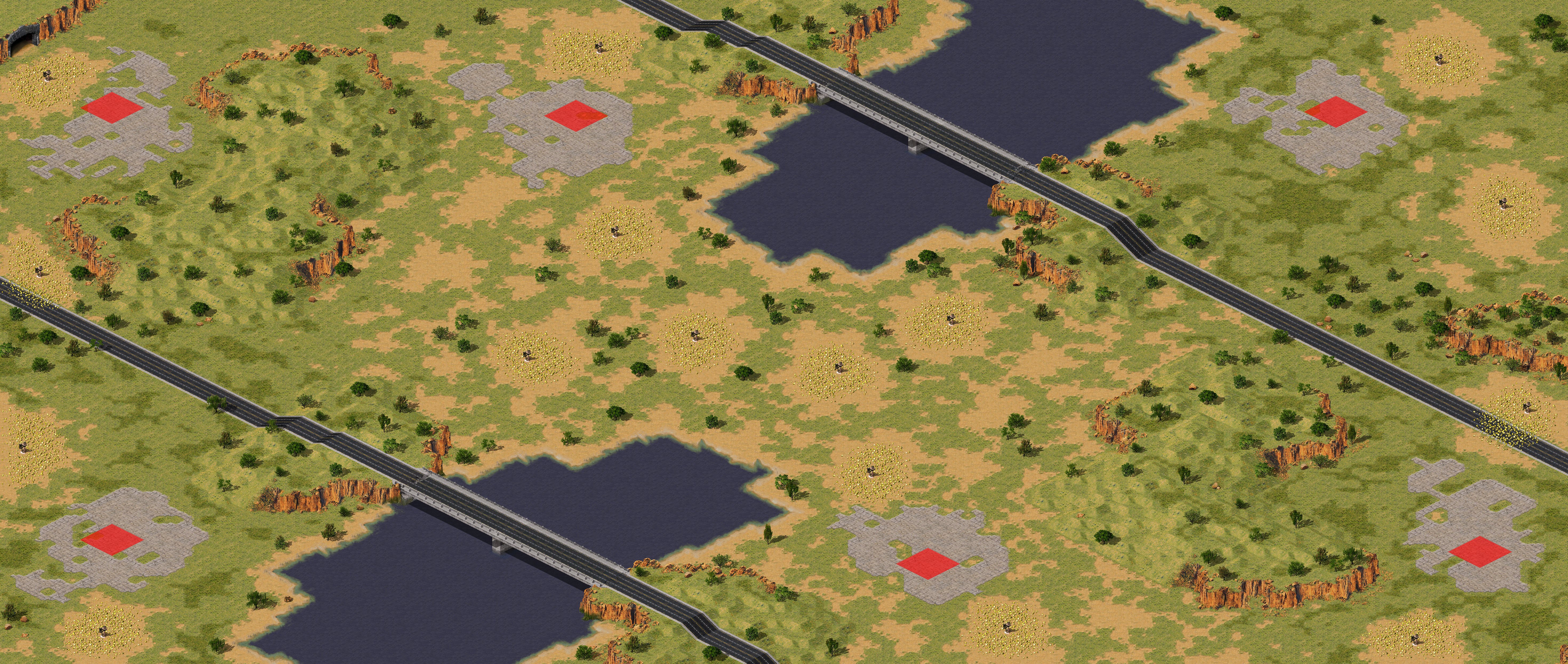 This is a straight six-player map for designed for FFA and team play. The gold is spread evenly all throughout the map, players will also find oil derricks.